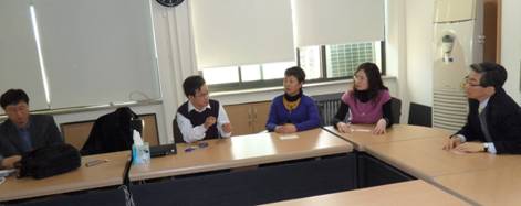 图为声学所访问团与韩国合作方的项目合作讨论(左起:Lee Keekeun副教授,王文副研究员,科学院国际合作局陈维平处长,声学所科技处黎瑛,Yang Siksang教授)