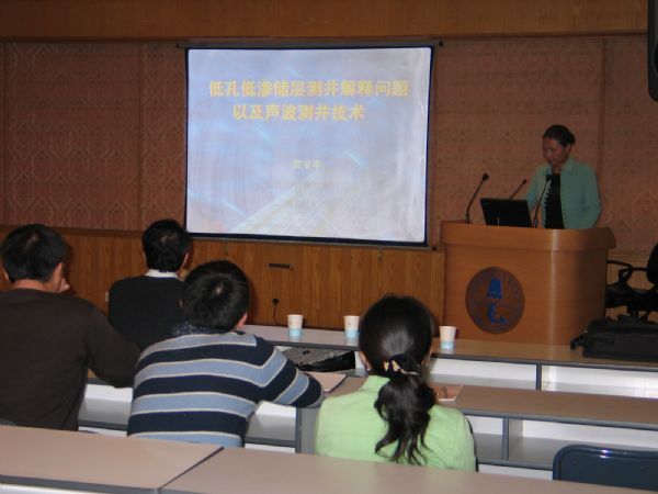 黄宝华高工长期从事测井资料处理及解释的工作,并多次到声学所作学术报告和技术交流。本次报告系统介绍了测井方法的分类,指出目前的测井方法主要包括电法测井、声波测井、放射性测井和一些新兴的测井方法如核磁共振等,这些方法在获得地层岩性和物性参数等方面各有优缺点,只有将多种方法综合应用,才能较好的分析地层的参数。报告中也介绍了目前这些测井方法在实际石油生产中的应用,例如利用声波测井资料可以检测地应力、识别油气层、检测水泥固井质量等;但是这些方法在实际应用中遇到了一些难题,比如在分析低孔低渗的储层及含气的火成岩储层等方面。最后,黄工指出目前国内的测井仪器和相应的资料处理水平较国外都有一些差距,并恳切希望进一步加强科研单位和生产单位的合作,提高我们的石油测井技术水平。