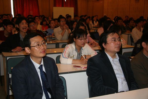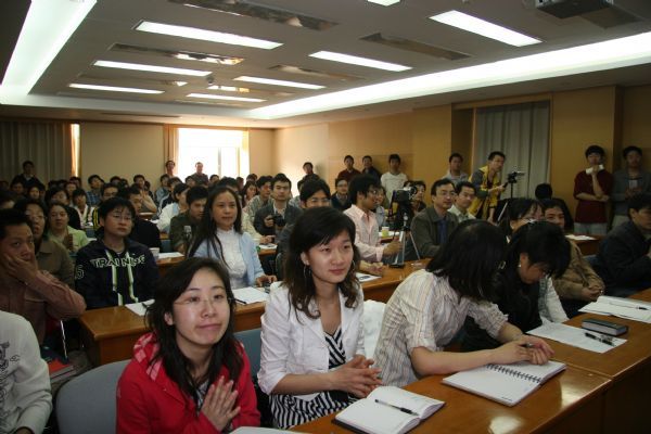 Blauert教授在4月15日-4月17日应邀作了关于双耳听觉感知、听觉计算模型、室内听觉环境和通信声学等历时三天的系列学术讲座。李晓东研究员与杨军研究员参与了该讲座的全过程,并就具体问题进行了讨论。通信声学及噪声与振动实验室的相关研究人员及研究生积极参加了所有的讲座。另外,北京大学、清华大学等大学相关研究领域的数十位老师及学生来到声学所参加讲座,其中同济大学的张洁同学是15日早专程由上海赶来。Blauert教授全面地介绍了他及其实验室在人耳听觉感知领域的研究成果,与会人员反映热烈,均感觉获得了一次非常难得的学习机会,并对声学所能提供这一难得的机会表示感谢。