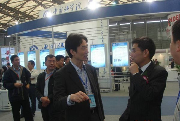在为期5天的展会期间,中科院副院长施尔畏等领导在中科院院地合作局局长戚强、上海分院副院长朱志远的陪同下巡视了展台。参展代表温周斌副主任向其详细介绍了参展产品已经取得的成绩、产品的质量、技术含量、产业化前景。
