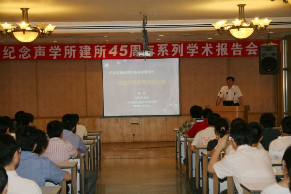 报告中,杨军博士还介绍了学科组近年来在智能声场控制领域的代表性成果、应用实例和发展方向。通过研究声场重放和有源控制的内在联系,杨博士提出面向目标的声辐射生成技术的概念,建立了声场控制研究的统一模型。杨博士指出:有源噪声控制的是要尽可能减少目标区域的噪声能量,产生声学上的“暗区”,聆听声场重建则是指在特定区域或方向集聚声能即传送声波,产生声学上的“亮区”。声能量的“有”和“无”,对应着在目标区域实现的声场状态,可以看作声场控制结果的“正、反”两面。它们的共同点是产生实现控制目的所需要的声波,不同点仅在于辐射模式的不同。报告中给出了理论分析和实验结果、控制算法以及集成系统等。最后,杨军博士还针对有源噪声控制和声场重放技术,以动画和录像的方式绘声绘影地报告了“销声匿迹VS.量声定做”的研究成果,并强调在声学研究领域中要注重物理现象的本质问题,基于物理机制的研究,提倡新思路、结合新技术和工程需求,才能做出有创新的科研成果并真正走向实用。