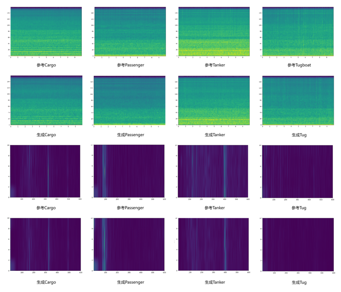 图2 真实参考与生成舰船辐射噪声的谱特征对比图(图/中国科学院声学研究所)
