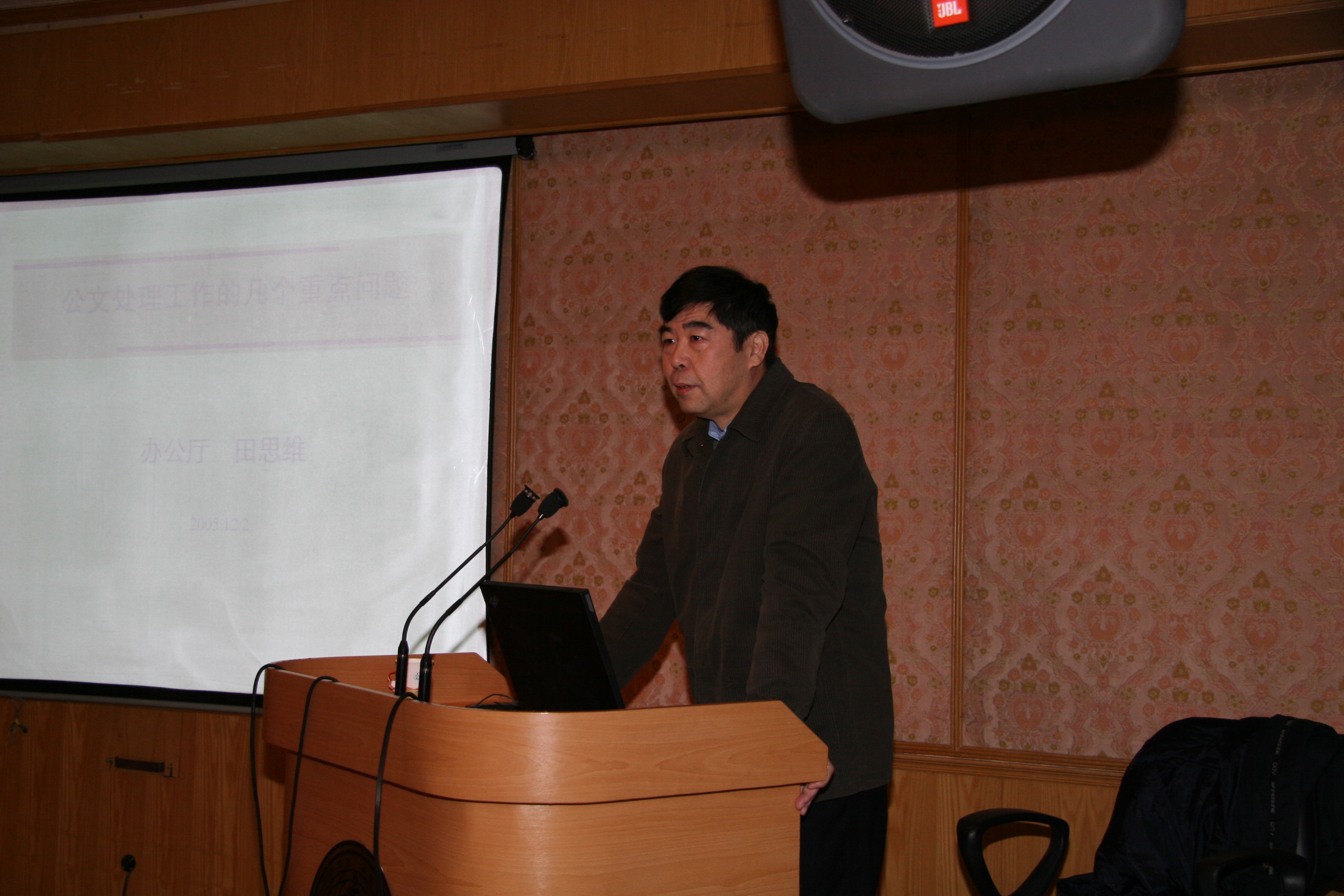中科院办公厅文书处田思维处长就公文种类、公文写作及管理、公文格式、公文纠错等相关知识做了系统全面的讲解。培训结束人教处向大家发放了调查问卷,学员均表示通过此次培训,对公文写作相关知识有了进一步的了解,并对工作有一定的促进作用。