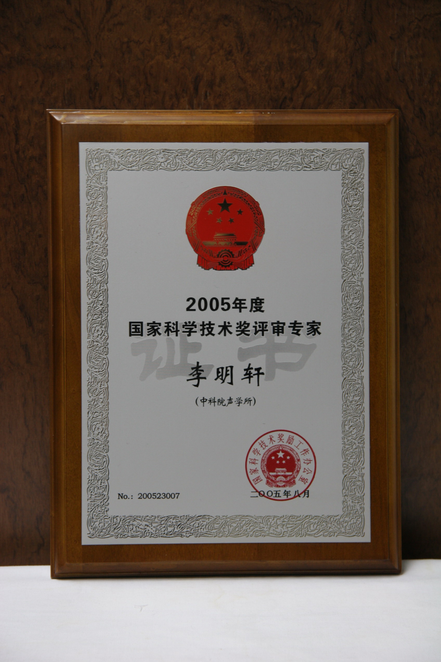 我所李明轩研究员被评为2005年度国家科学技术奖评审专家