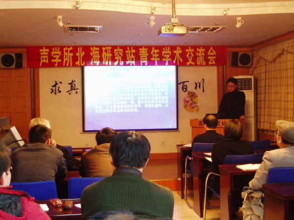 会议由站学术委员会林建恒主任主持,张胜坚站长致开幕词,基础研究、水声实验和技术开发等课题的年轻技术人员分别就自己研究的课题阐述了自己的见解,李锡禄副站长、徐海亭研究员和蒋国健研究员就感兴趣的问题进行了提问,林建恒主任为青年同志作了“海洋环境噪声研究”的专题演讲。与会人员讨论热烈,学术气氛浓厚,达到了增进年轻人和各课题之间相互了解、相互学习、加强合作的目的。
