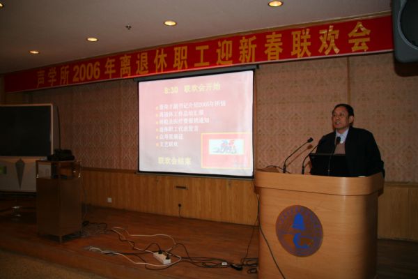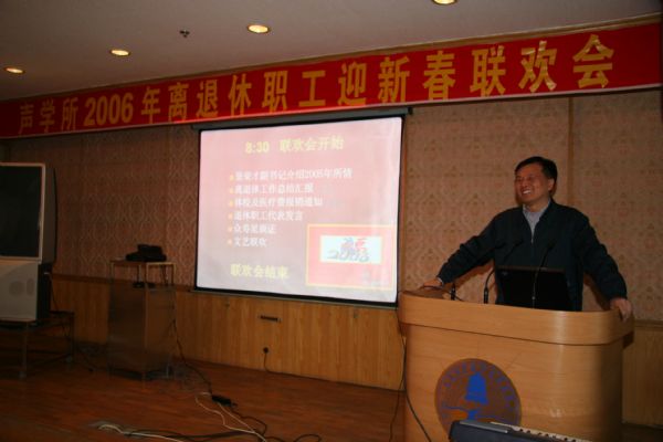 会上田静所长、景荣才副书记向全体离退休职工致新春贺辞,祝愿老同志身体健康,阖家欢乐。景副书记通报了我所科研、管理、人才队伍、文化建设等情况,肯定了过去人事教育处一年来的老干部工作;退休支部书记、副书记分别讲话,主要对过去一年的离退休工作进行了总结。人教处处长刘卫华做了2005年离退休工作总结及2006年离退休工作计划。