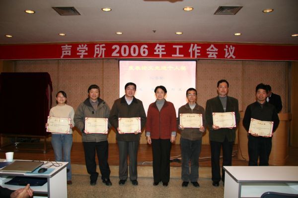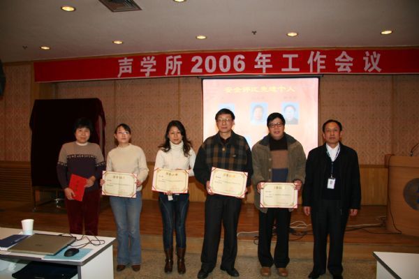 之后,大会还表彰了保密工作先进部门、保密工作个人优秀奖及优秀工作奖,景荣才副书记还宣读了共青团声学所委员会“关于表彰2005年度优秀团员的通知”,并对优秀团员进行了通报表彰。闫玮丽、程洋、周城光、崔寒茵、吴楠、张云鹏、朱承纲、朱沛胜、熊亮、韦向峰、王嘉、吴晨、张维、徐震等14位同志被评为2005年度优秀团员。
