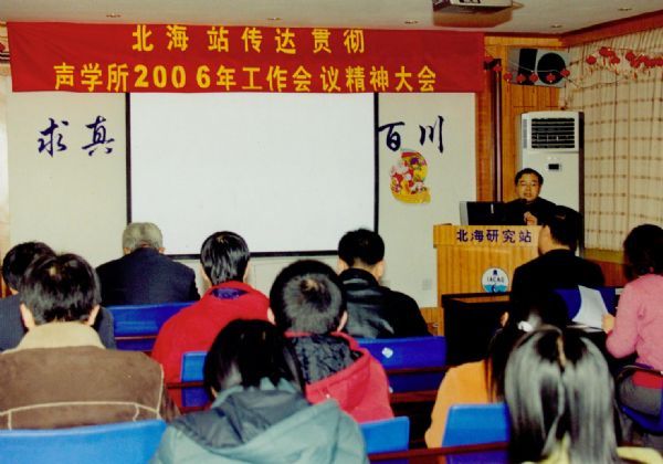 2月22日下午,北海站在多功能学术厅召开全站职工大会,传达所2006年工作会议精神。