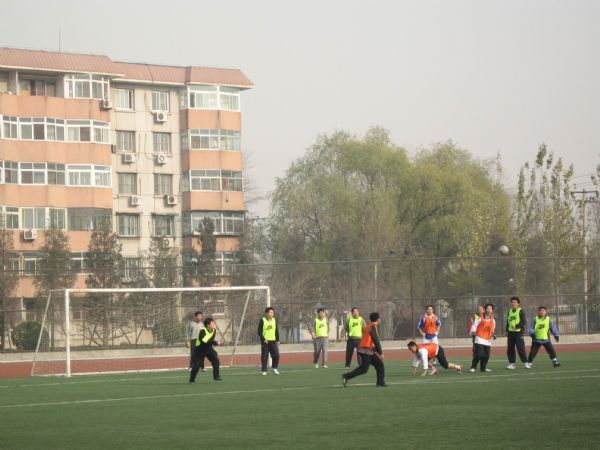 6月24日18:30,天空正下着小雨,我所足球队与微电子所足球队的淘汰赛开始。受天气影响,比赛一开始双方失误都较多,但我们球队首先适应了天气的影响,前场三叉戟——刘云涛、尹铫、黄泥多次打出精妙配合,在一次定位球的攻门进攻中由刘云涛率先破门,1:0我们领先。对方加强了进攻,十几分钟后,在糟糕天气的影响下,对方也利用了我们的一次失误攻入了一球。1:1平。由于是淘汰赛,因此双方对于1:1的比分都不满意,都加强了进攻。雨越下越大,对抗也越来越强,黄泥受伤下场,易洪所长助理、“航母”孙贵青、队长王之禹等中场核心球员多次受到对方队员的特殊照顾和暗算,一次次的在雨中被放倒。为了球队,大家都保持着冷静的头脑,对微电子所足球队队员的犯规做着极大的克制。时间在一点点的过去,双方都没有再给对方机会,1:1的比分保持到终场。比赛进入残酷的点球大战。我方罚点球队员:王之禹、尹铫、刘云涛、徐立军、范兵。守门员赵文耀表现神勇,两次扑出对方打在门框内的点球,对方打飞一个,打入两个。我方点球人员打入三个,打飞两个。点球3:2,总分4:3险胜。进入下一轮,对手将是半导体所与数学院的胜者。