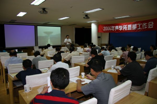 2006年8月16日-17日,为期两天的声学所2006年质量工作会在京召开。来自所本部各职能部门、研究部室中层以上领导干部代表及相关质量管理人员共30余人参加了会议。