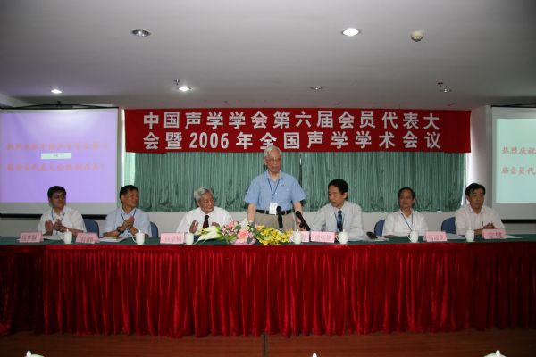 中国声学学会第六届会员代表大会暨2006年全国声学学术会议于2006年10月18日-10月22日在厦门召开。共有430人参加了本次大会,这是我国声学界几代人共同参与的一次会议。参加人数为近年来国内声学会议之最。马大猷院士、应崇福院士、张仁和院士、侯朝焕院士、杨士莪院士、马远良院士、吴硕贤院士等参加了会议。