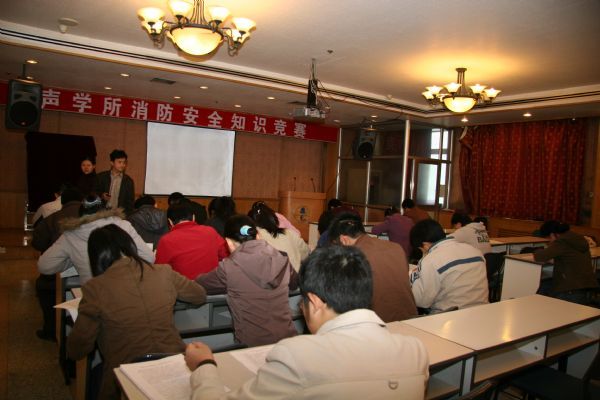 2006年11月15日,声学所安全委员会、办公室联合组织,各部门积极配合,围绕今年消防宣传日“关注安全,关爱生命”的主题,组织开展消防知识竞赛及消防演练比赛等多种形式的宣传活动,将消防宣传活动推向高潮。