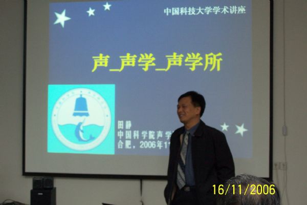 随后,田静所长回顾了我所与中国科大的合作渊源,介绍了声学所的基本情况和“十一五”发展思路。他说,声学所“十一五”期间将努力争取更多的社会资源,和企业、高校建立更广泛的合作关系。对下一步双方在人才交流、科研合作以及声学学科建设等方面如何开展更全面的合作,田静所长在讲话中还提出了许多建议。