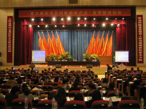 本次会议,有来自不同省市及单位的400余位项目管理人员及档案人员参会,会议由国家档案局局长主持。会上,国家发改委稽察办包锡盛司长宣讲了重大建设项目稽察与档案管理的关系及应注意的问题;国家档案局王燕民副司长宣讲了《重大建设项目档案验收办法》的理解及验收注意的问题,同时还宣讲了建设项目档案管理的基本要求、工作思路、标准规范;有关专家介绍了信息技术在建设项目档案管理中的应用。另外,大会还安排了经验交流活动,福建省档案局及江苏省交通厅作了大会发言,介绍了在建设项目档案工作中的一些先进经验和管理方法。