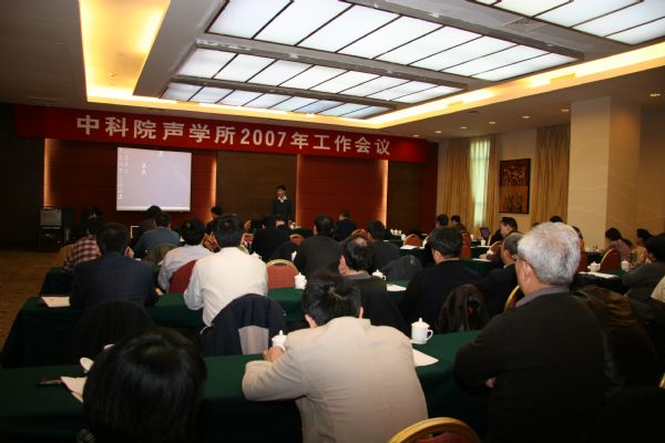 2007年2月7-10日,声学所召开了2007年工作会议。来自所本部各职能部门、研究部室和京外三站的中层以上干部代表共50余人参加了会议。所长、党委书记田静代表所党政领导班子在会上作了年度工作报告并发表重要讲话。