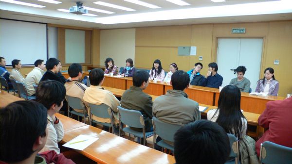 声学所07年新老生座谈会于3月16日下午5点在德昭楼会议室举行。除了06级新生,学生会学术部为我们邀请了在各方面拥有众多光环的我所师兄师姐,还有人教处卢老师、张老师也从刚刚结束的博士生入学考试考场赶来出席了这次座谈会。