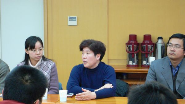 教育处的卢老师、张老师介绍了声学所的基本情况,剖析了近年来的就业情况,将座谈会引领到一个高潮。卢老师强调了在研究生院学习这一年的重要性,要求我们一定要打好基础,才能更快的和实验室的工作接轨。此外,卢老师还补充了在工作、学习中应该注意的一些问题,对发表论文、签约事项、出国深造等和我们最相关的问题也一一进行了解说,而后,同学们踊跃的提问,整个座谈会呈现出一派生动又活泼的场面,感染了在座的所有人,卢老师欣喜的鼓励学生会的学术部成员,以后这样的座谈会要经常举办,加大新生与老生的交流,大家共同进步,使得新生更好更快的融入到声学所这个大家庭中。