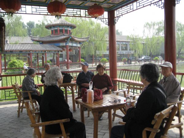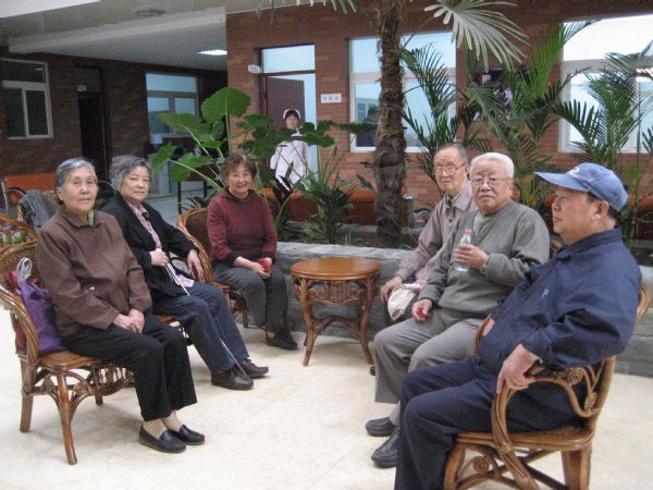 2007年4月28日,天气格外晴朗,应太申祥和-国际敬老院的邀请,我所组织离休干部参观了国际敬老院。老同志们早早的来到所里,一路上,老同志互相关心的问候不断,每个人的脸上都洋溢着欢心的笑容。走进敬老院,占地150亩的一片恢宏仿古建筑群展现在眼前,亭台水榭,长廊环绕,绿柳成荫,火鸡、孔雀、鹅、及野鸭子悠闲地在湖边乘凉;老同志们兴致勃勃地观赏花卉,切实感受到了身心的愉悦,在与可爱的小动物们进行零距离接触的同时享受到了人与自然的和谐。