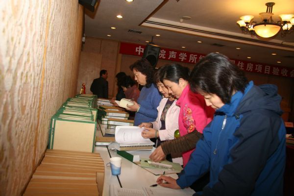 2008年3月28日,声学所“经济适用住房”项目验收会在声学所召开。院基建局局长孔繁文与验收组专家一行14人主持并进行了验收工作,院高技术局局长田静和声学所副所长张春华会前看望了孔繁文局长和验收组专家,声学所副所长潘锋、纪检副书记苏媛等有关人员参加了验收会。