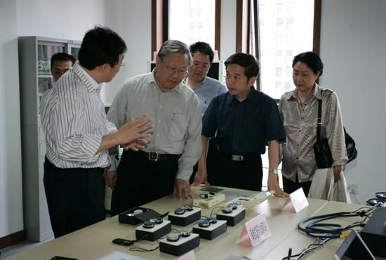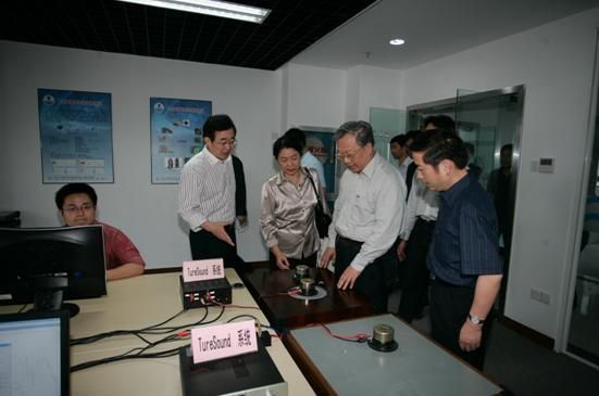 路甬祥在参观嘉兴工程中心电声产品展示室时,对中心已经开发完成的蓝牙立体声耳机、蓝牙车载免提装置和超指向性扬声器系统,以及正处于研发后期的“扬声器音质在线检测仪”等产品表现出浓厚兴趣,仔细询问了这些产品的特点、用途、价格和市场化前景等。当了解到“扬声器音质在线检测仪”项目来自于合作企业的需求,可在生产线上实现对扬声器、受话器等产品音质进行客观评价,以代替人工主观听测这一传统检验方式时,路甬祥说:“能满足企业发展需求很好,体现了你们的价值。同时,可以考虑在其他方面的应用,如果能检测家庭音响系统的音质,价格能让老百姓接受,这样的市场会更大”。在参观水声产品展室中的定位浮标、水下声学应答释放器和水下声学信标等海洋声学仪器时,路甬祥说:“欧洲有很多十几个人的小公司生产海洋声学仪器,可以学习他们,要面向全世界的市场”。