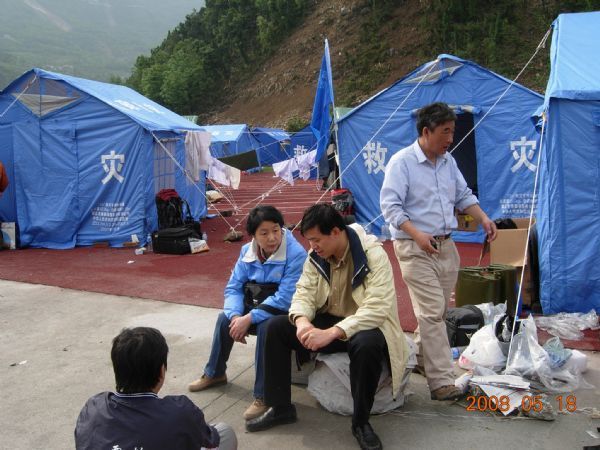 声学所赈灾工作人员到达绵阳北川之后,迅速和上海微系统所及计算所的工作人员一道,展开了基站的部署工作,他们发扬团队精神,克服了种种困难,在两天之内完成了所有基站、终端、PPSIP系统、摄像设备等的安装部署工作。