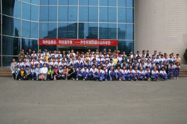 声学所第四届公众科学日于5月17日如期举行。一走近大门就能看到,声学所院内插满奥运五环彩旗,大门口悬挂着引人注目的红色大型横幅,身着统一服装的志愿者精神饱满站立两旁。横幅和彩旗在五月和风的吹拂下尽情摆动,欢迎每一个前来的参观者,到处都充满了热烈而又详和的气氛。社会各界的群众,来自大学、中学和小学的学生团队,或三三两两家长领着孩子,陆陆续续走进声学所大门,在科普志愿者的热情引导下,大家依次参观了声学所展室、声场声信息国家重点实验室、音频声学实验室、超声物理与探测实验室、水声测试水池和科研成果展示区。