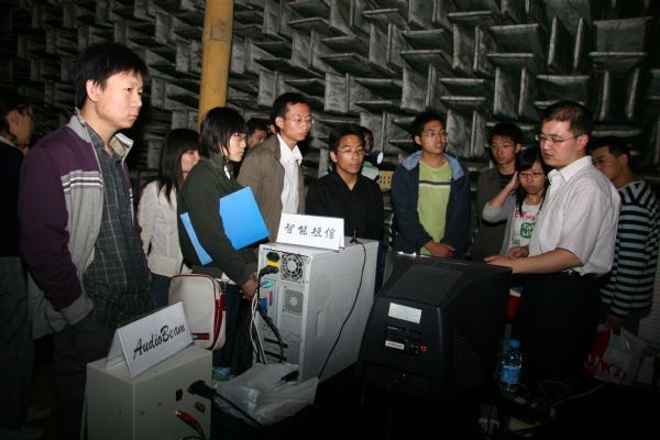 在科研成果展示区,孩子们围绕在“歌曲哼唱检索系统”和“语音识别系统”展台前,当看到仅仅哼唱了一小段曲调,歌曲名称就能准确显示在电脑屏幕上时,孩子们大声称奇,一个个手持话筒亲自体验。“高指向性声频扬声器”及“智能短信处理系统”的展台前也是挤满了参观者,讲解员一边演示一边耐心解答大家提出的有关声学技术和语言信息处理技术的问题。“高清互动电视业务系统”、“ 网络推送高清播放系统”和“数字电影放映机”展台前同样吸引了众多参观者,网络和移动通信技术的快速发展给人们的生活品质带来了很大的提高,“高清互动电视业务系统”能够让人们随心所欲地选择观看电视节目,目前此项技术已经成熟,并在上海嘉定进行商业化应用;“复合型地面高清播放器”是为2008年奥运会专门研制的成果,它的成功应用,使得人们在北京奥运会期间,可随时无损接收、录制、播放“央视高清”奥运频道。