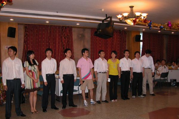 随着主持人宣布本次2008届毕业生欢送会开始,各位毕业生代表和其他年级的同学联决献上了各种精彩的节目: DSP实验室的同学献上了一曲合唱《朋友》;叶利剑同学表演了笛子独奏;重点室和超声实验室的同学合唱了一曲《明天会更好》,欢送会现场一直掌声不断。此外,在节目表演中还穿插了各种游戏环节:吸管运输、塞嘴巴、正话反说、夹气球跑、抢凳子、扮时钟和心有灵犀等,游戏妙趣横生,引来阵阵欢笑,整个大厅都沉浸在一片欢声笑语中……