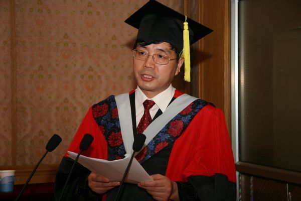 学位评定委员会副主席、副书记王小民研究员宣读2008年毕业生名单、毕业生导师、毕业论文题目,并对毕业生们表达了良好的祝愿。
