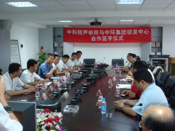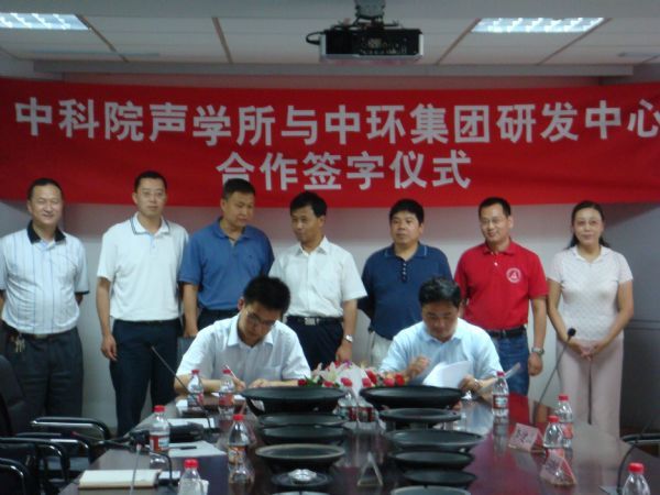 2008年7月31日,中国科学院声学研究所与天津市中环电子信息集团有限公司研发中心在位于天津滨海新区的中环集团总部,就“大功率、强噪声特种声学设备及系统研究”项目合作举行了签字仪式。参加签字仪式的有天津市科委科技成果与技术市场处处长李庆兴、天津市经委科技处副处长赵嘉、中科院北京分院院地合作处副处长魏令波、项目主管王剑华、天津市中环电子信息集团有限公司总工程师秦克景、天津真美电声器材有限公司总经理邢维武、中环集团研发中心声学所所长张吉宏、中科院声学所科技处处长库卫群、副处长任小燕、噪声与振动实验室副主任杨亦春以及项目组的主要成员。