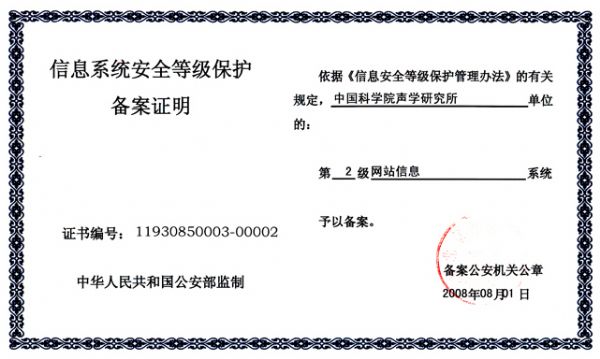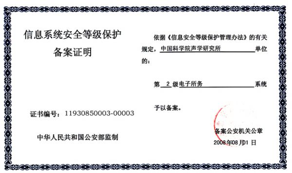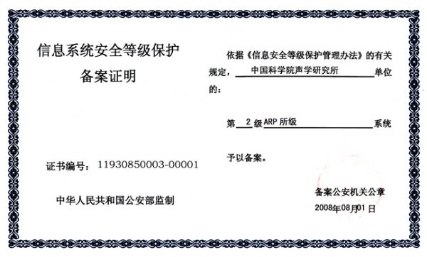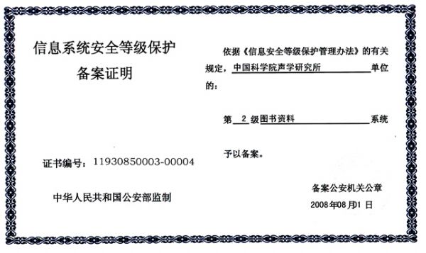为贯彻落实国家信息安全等级保护制度,按照《关于开展全国重要信息系统安全等级保护定级工作的通知》(公信安〔2007〕861号)要求,声学所在全所范围内开展了重要信息系统安全等级保护定级工作。