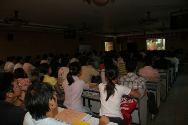 ![]() 随后播放了声学所的宣传片,宣传片对声学所的历史、研究方向、学术成果等进行了细致介绍。通过宣传片同学们了解了声学所雄厚的科研实力,体会到了声学所民主自由开放的学术环境,明确了自己今后的奋斗方向。在观看宣传片的同时心中更是由衷的升起一股自豪感,为自己能够在声学所这样优秀的科研机构学习而感到荣幸,为自己能够聆听学术大家的教诲而感到骄傲。