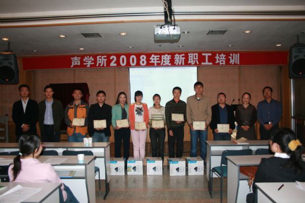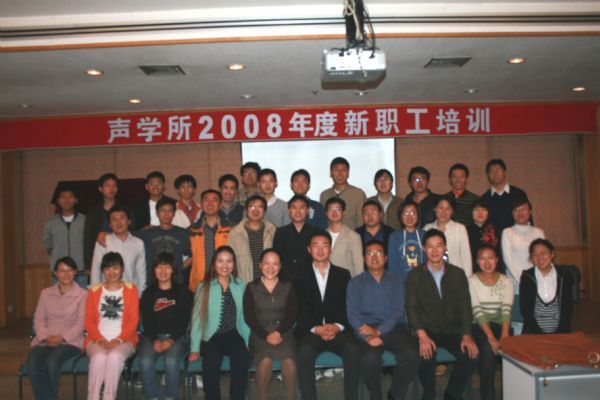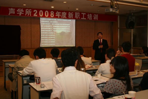 在所领导的关怀和所内各部门的大力支持下,声学所2008年新职工培训工作经过大家的共同努力已经圆满结束,并取得了良好的效果。在10月15日下午的培训开班仪式上,张春华副所长在多功能厅为新职工做了《中国科学院声学研究所及其组织文化》的报告,王小民副书记发表了热情洋溢的致辞,颜永红助理做了《千里之行始于足下——欢迎新同事》的报告,人事教育处刘卫华处长主持了开班式,38位新职工在为期四天的培训中,还参加了所规所情、《新职工职业化塑造》及拓展训练等内容的学习。