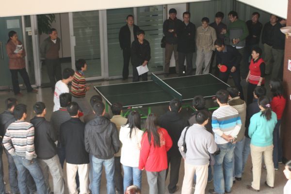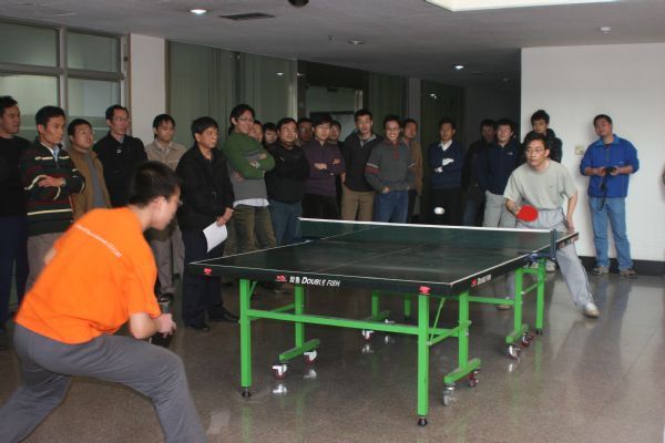 抽签分组之后,比赛于11月17日中午在DSP大楼一层大厅正式拉开帷幕。由于本次比赛采用的是淘汰制,每轮出线权的争夺显得尤其激烈。男单、女单、混双,比赛一轮又一轮的进行着。经过一周的紧张角逐,各单项的“四强”纷纷产生。