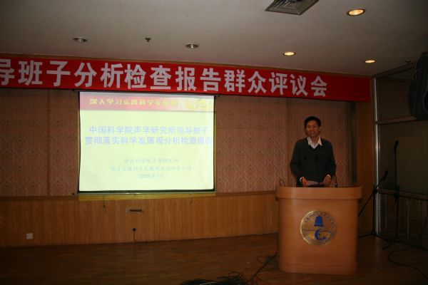 会议由张春华副所长主持。王小民副书记作了《中国科学院声学研究所领导班子贯彻落实科学发展观分析检查报告》。