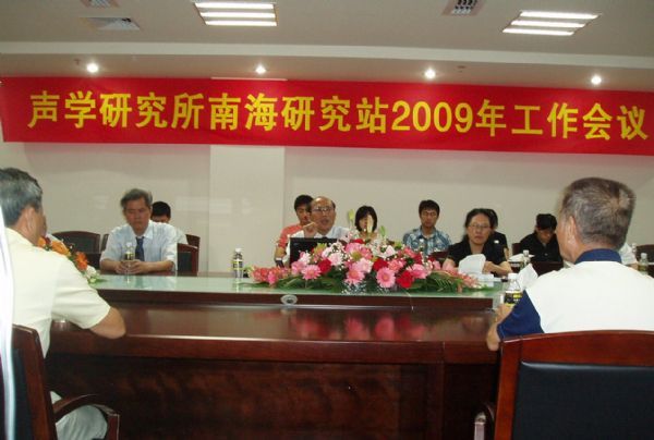 随后,戴琼兴代表党政领导班子对2008年工作进行了全面总结。他指出: 2008年南海站全体职工在声学所“奋进,2008”工作主题的指导下,解放思想、锐意进取、努力拼搏,各项工作取得了可喜的成就,年初制定的6大工作目标基本完成。主要表现在:科研工作取得突破性进展,争取科研经费和发表学术论文等方面均取得较大成绩,学术氛围日趋浓厚;人才队伍建设初具规模,第一梯队科研人员已经成为了南海站的业务骨干,逐渐开始独立争取课题和开展研究工作,第二梯队人才队伍基本构架已经搭建完成;“无边界管理”工作模式效果显现,机关职能部门的管理水平和工作责任心明显增强;“科研综合楼”项目已经通过验收并投入使用,海口园区基础建设基本完成;三亚土地建设指标和土地使用性质调整工作完成,陵水“水声与海洋观测站”取得国有土地使用证,为声学所“863”重大项目的顺利实施奠定了坚实的基础。