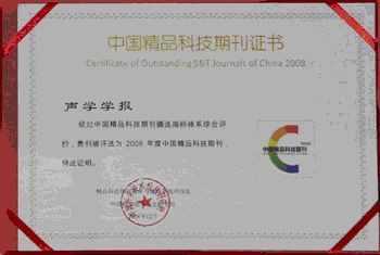 《声学学报》是经过中国精品科技期刊遴选指标体系综合评价,被评选出的精品科技期刊之一。《声学学报》创刊于1964年,刊载具有创造性的声学研究论文、实验性论文和重要应用性论文(包括实验工作、理论和应用研究、仪器研制)。