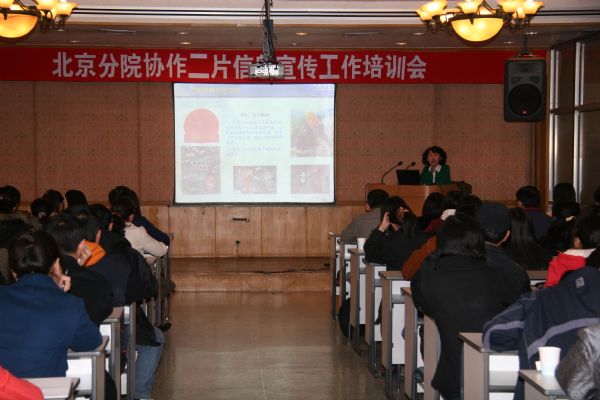 2009年3月26日,为提高信息宣传员工作水平,北京分院协作二片在声学所举行信息宣传工作会,会议邀请中科院信息宣传处处长石硕和新华社主任记者李玲分别做了题为“如何共同做好信息宣传工作”和“用报道架起科技与公众互通的桥梁”的主题讲座。讲座由声学所综合办主任周秀霞主持,力学所、理化所、电子所、过程所等单位及声学所信息宣传员等百余人参加了培训。
