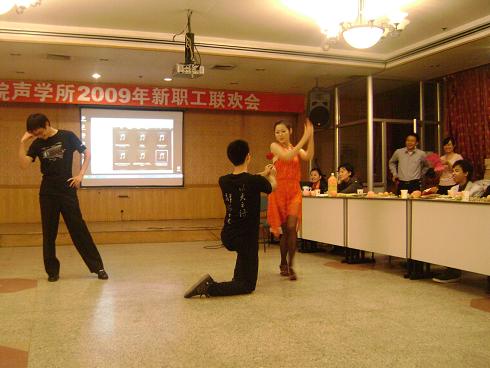 为了增进了解,建立友谊,崔杰、周翊、夏蕾、夏冰等新同志,利用业余时间编排节目,成功地组织了新职工联欢会。李风华副所长、杨军研究员、办公室周秀霞主任、科技处库卫群处长及人事教育处的刘卫华、张云鹏和张斌斌等同志参加了联欢会。