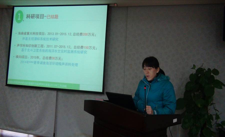 甘维明常务副站长首先做了2015年工作报告,从科研工作、平台建设、人才队伍和党建工作等七大方面总结了南海研究站2015 的工作成果。他在报告中指出,2015年在声学所的大力支持下,南海研究站党政领导班子深入贯彻落实十八届四、五中全会精神,自觉践行“三严三实”,面向 “四个率先”奋斗目标,深入推进“创新2020”和“一三五”战略规划的组织实施,紧紧围绕“聚力同心”的工作主题和2015年工作目标,开拓创新,扎实有力的推进各项工作健康有序发展,主要表现在:科学谋划南海研究站“十三五”布局,坚持面向国家需求、面向学科发展,立足南站自身优势和已有基础的科研理念;科研工作卓有成效,由我站承担的国家“863”计划重大项目子课题完成了海上试验,通过水下机器人在国内首次成功实现了1750米以上海深条件下的设备平台接口之间的湿插拔连接。注重院地合作和纵横向协调发展,进一步扩大与地方合作,承担多项省级科研项目,取得了一些创新的研究成果;南海海洋技术与系统试验基地建设项目取得突破性进展,项目先后完成建设工程规划许可审批、初步设计概算调整批复、建筑设计图图审,造价预算编制及审核、施工及监理单位招投标、施工及监理合同签订等工作,正式进入建设实施阶段;党建工作开展有声有色,站党委深入开展“三严三实”专题教育活动,认真落实党风廉政建设责任制,坚持做到围绕中心、服务大局、统筹兼顾、合理安排。顺利完成党委和各支部换届工作,进一步优化干部队伍结构、增强工作活力,选举产生的新一届年富力强的党委委员和各支部委员,展现出清新风貌。党政领导班子深入开展创新文化建设,大力关注民生,职工的生活水平和质量逐步提高,全站上下处处洋溢着出恬静和谐、健康向上的浓厚氛围。