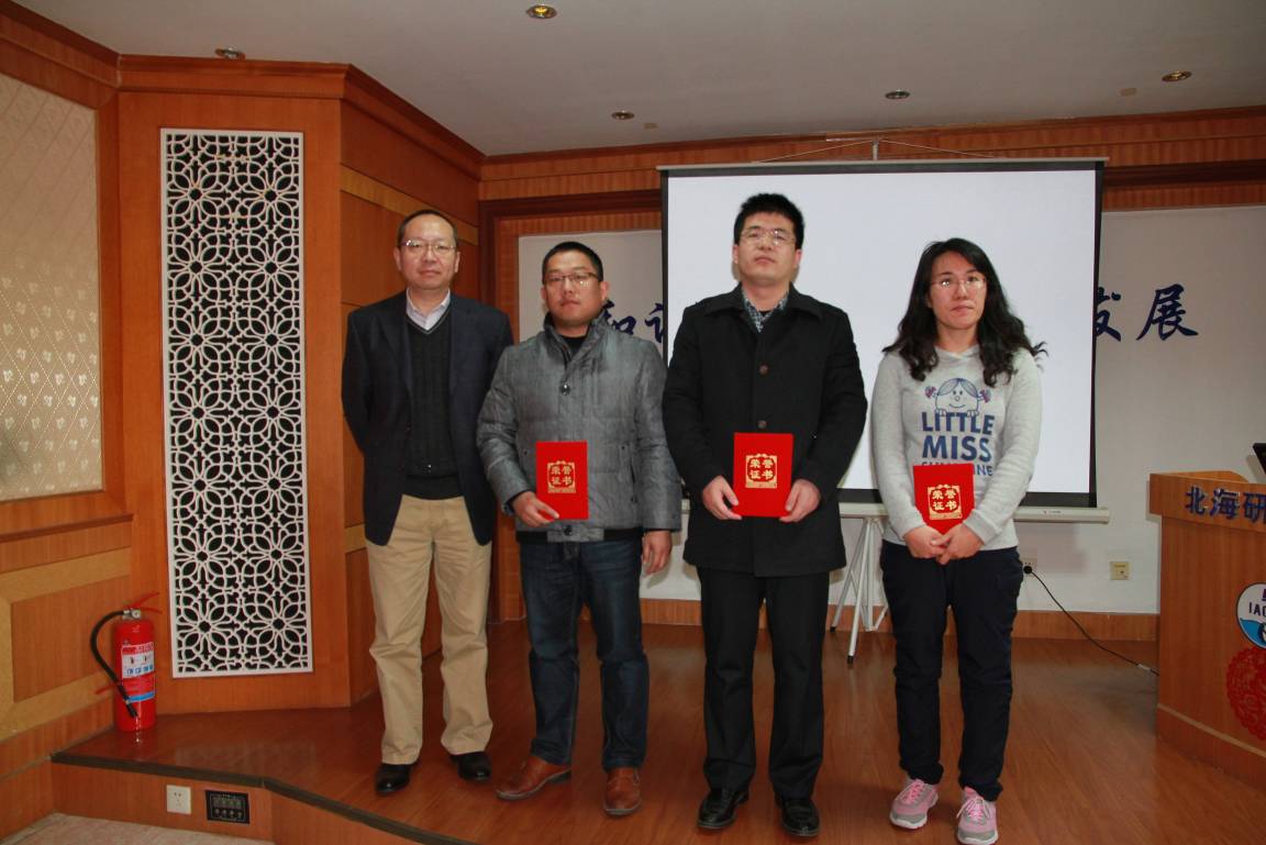 大会表彰了北海研究站2015年度先进集体、先进个人以及青年学术交流会优秀论文,并颁发荣誉证书。北海研究站全体职工合影留念。