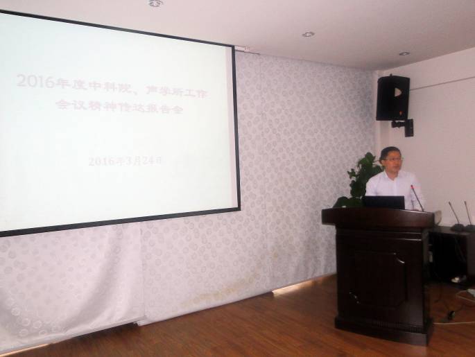 2016年3月24日,南海研究站在海口本部召开会议,传达中科院、声学所2016年工作会议精神,全站在职职工参加会议,会议由南海研究站党委书记张镇迈主持。